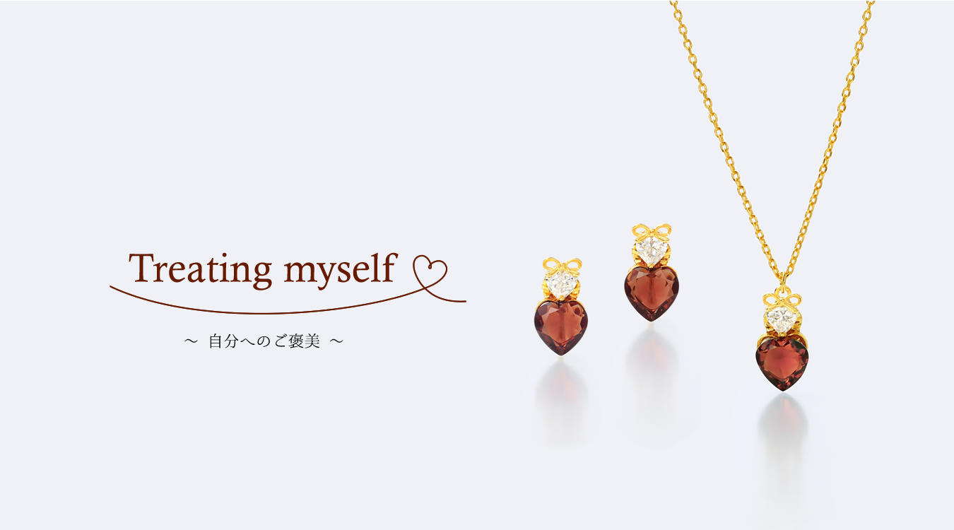 ハートの形にカットしたガーネットが、耳元や胸元で甘く艶めき視線を奪うデザインです。リボンをあしらったジルコニアを重ね、シンプルでありながら大人の可愛らしさが詰まっています。「ガーネットブラウン」が美しい、落ち着いた大人のバレンタインを演出してくれるアイテムです。