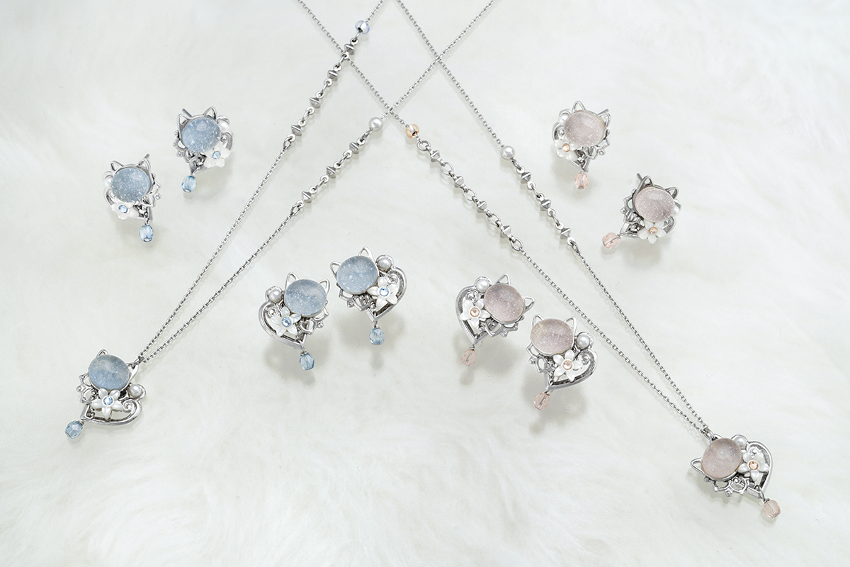 毎年人気の「ねこ月間」の新作アイテム。今年は、今までになかった淡く優しいピンクとブルーカラーが可愛らしく新鮮な、猫モチーフの新作ぴあり・ピアス・ネックレスが新登場しました。